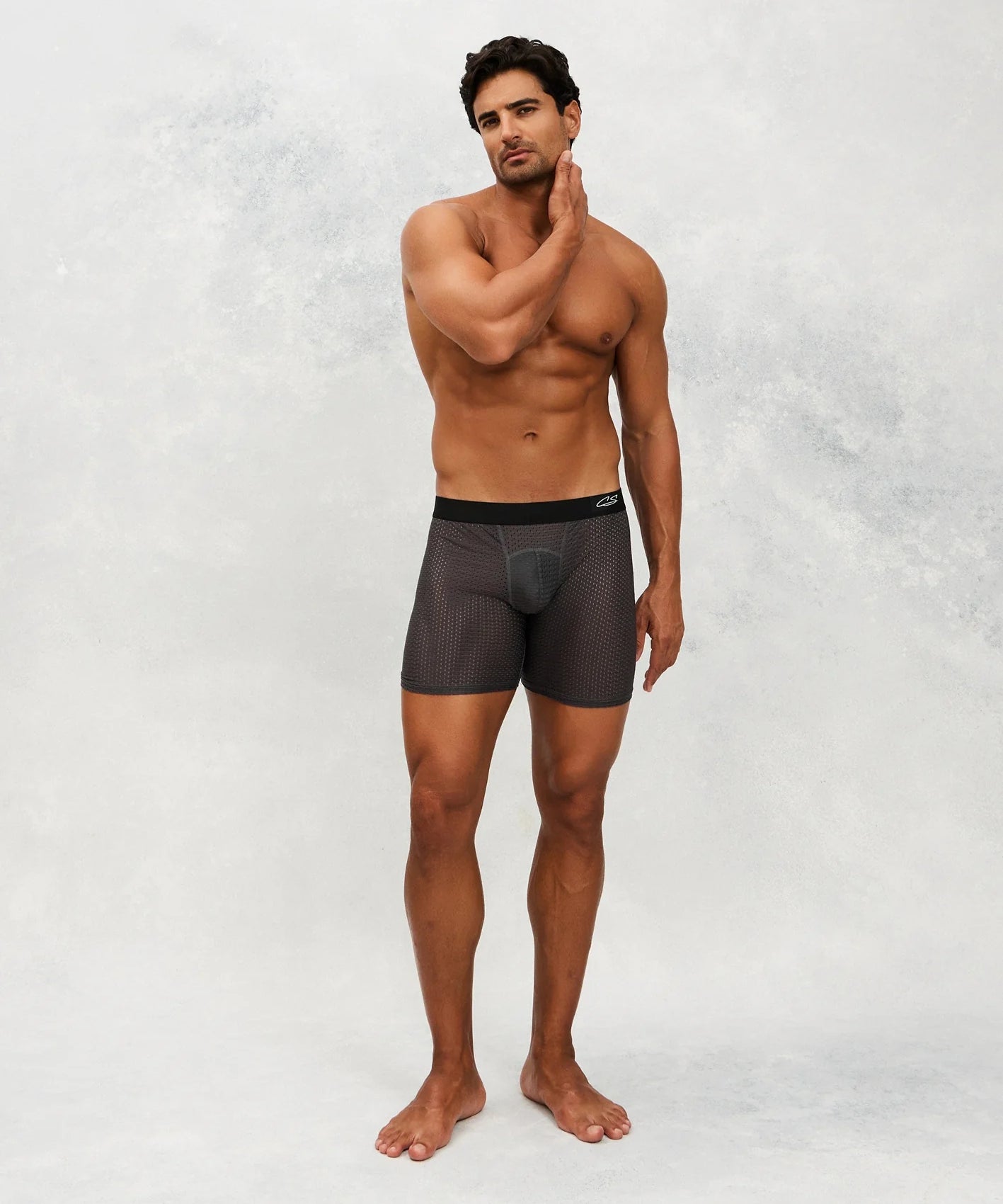 Front photo for a Model wearing Airtech Ice Boxer Brief in grey.